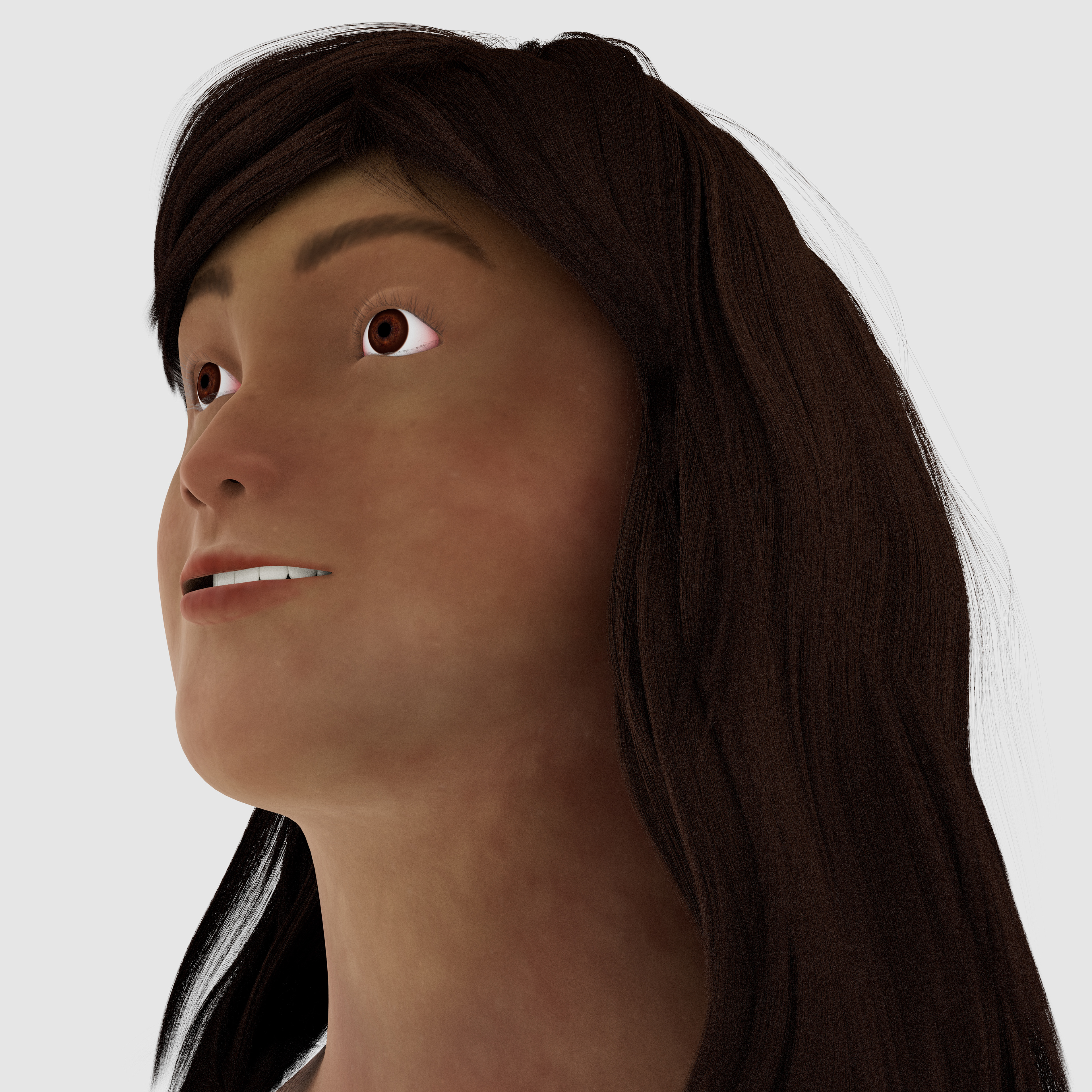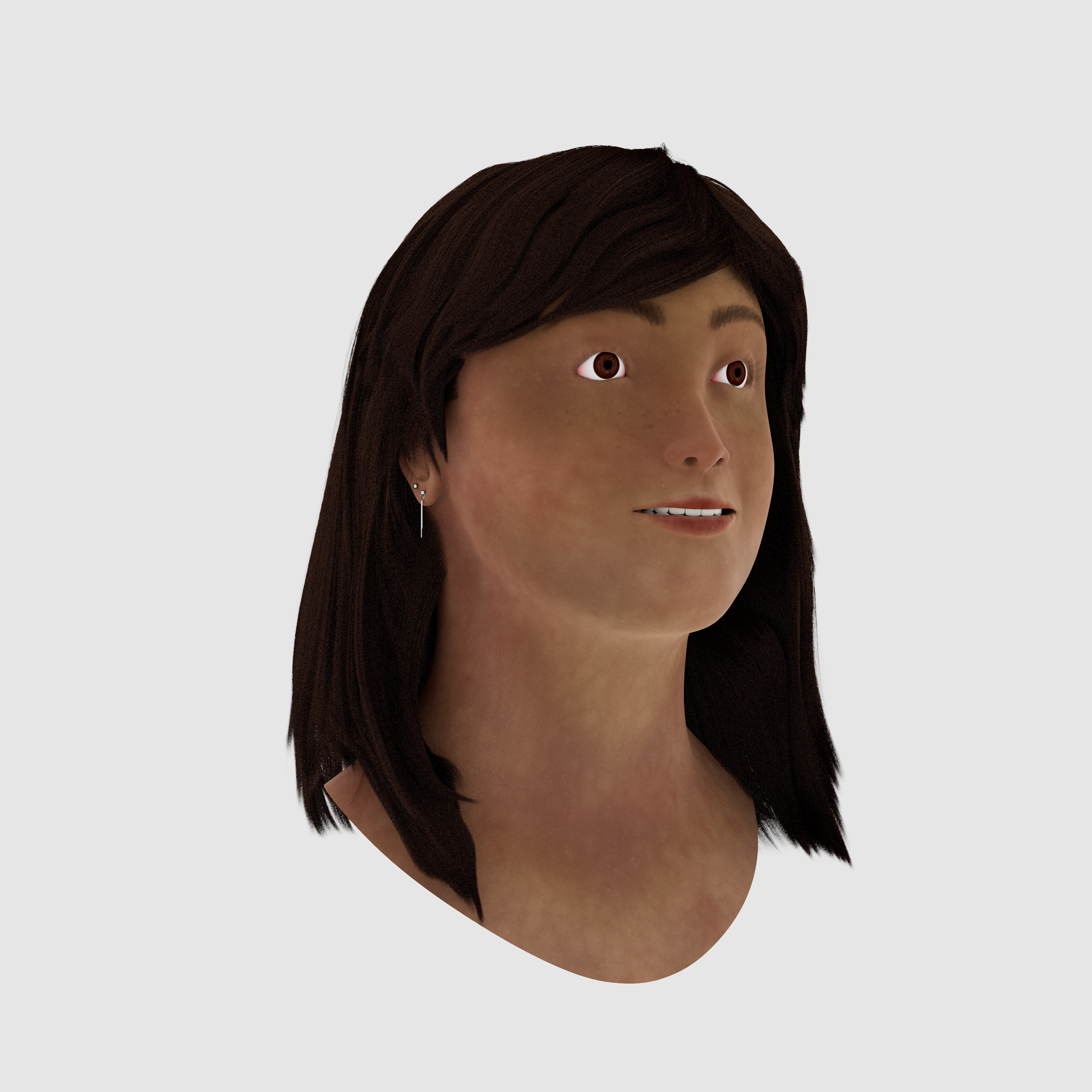 The first step to creating a self-portrait was to create a 3D photometric before moving into Maya and retopologizing the model. Once the foundation of the bust was created, the focus turned to identifying features, such as eye shape, bridge of the nose, lips, and ears. Moving into Substance Painter, a skin displacement map was utilized to create skin pores and wrinkles before adding a base skin tone and painted red, yellow, and blue undertones. Further adding to the realism to the skin, sun damage and freckles were scattered throughout, before moving on to model the hair. The hair was generated with Maya's XGen Interactive Grooming to recreate the most accurate and realistic hairstyle.
